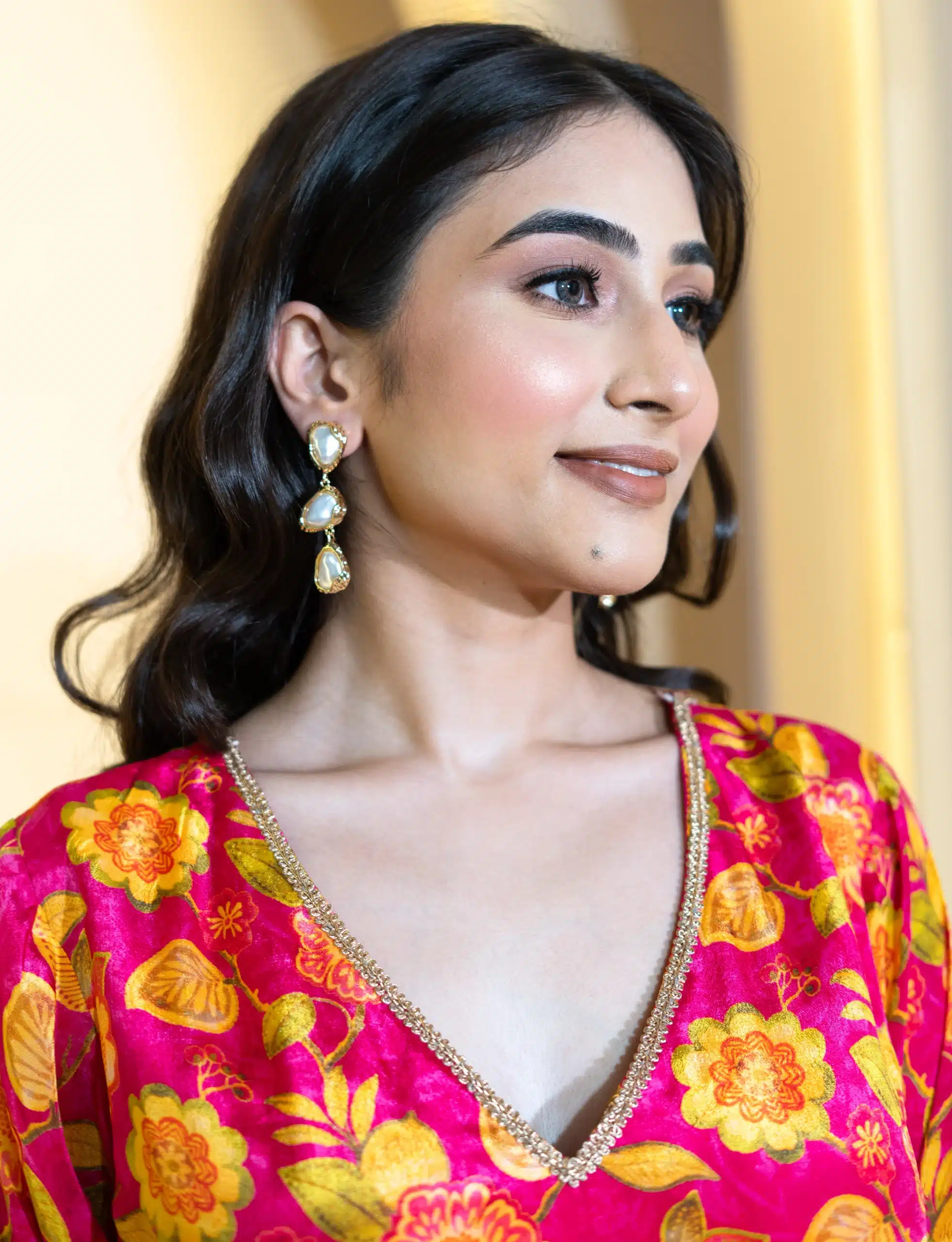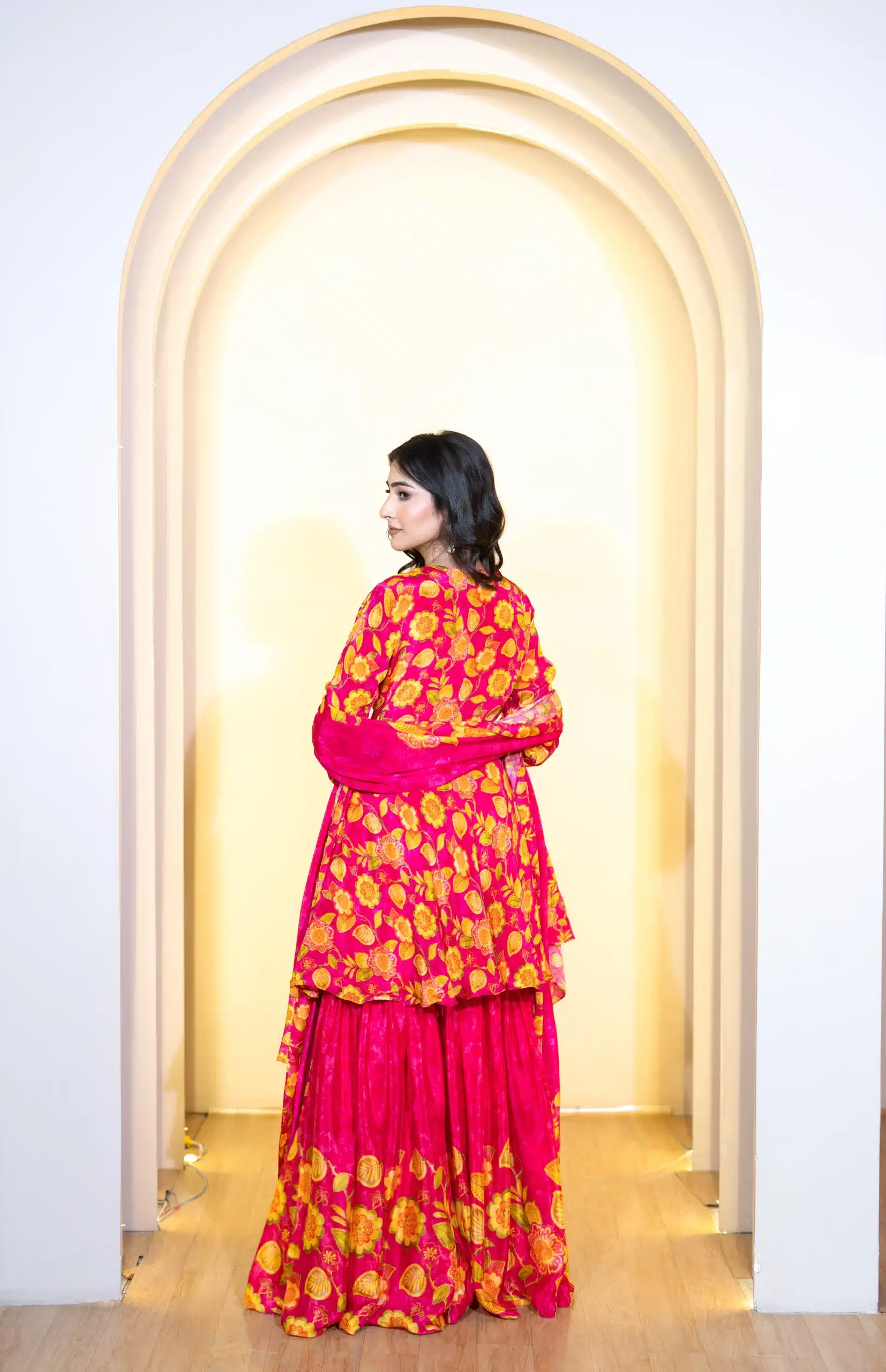 The top is designed with intricate detailing, often enhanced by lacework, embroidery, or sequins, while the bottom and dupatta complement the look with coordinated patterns or solid tones. The fabric’s fluid nature ensures a flattering fit that moves beautifully with you.